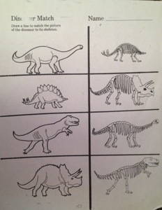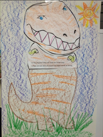 Picture Completion-Great for developing creative thinking! I got the drawing of T-Rex from a “Teacher Created Materials” teacher resource book. The students had fun drawing the rest of T-Rex’s body along with his environment.