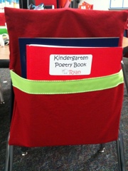 My mom made these beautiful chair pockets for my kindergartener’s chairs. I can’t wait to surprise my students with these on Monday! She bought the material from Hobby Lobby along with the gross grain ribbon in yellow, green and blue. I had an old and very worn chair pocket, given to me by a previous teacher. She used that as her pattern. My mom was amazed to see video’s on You Tube and instructions on Google-for free. How wonderful to live in the information age!